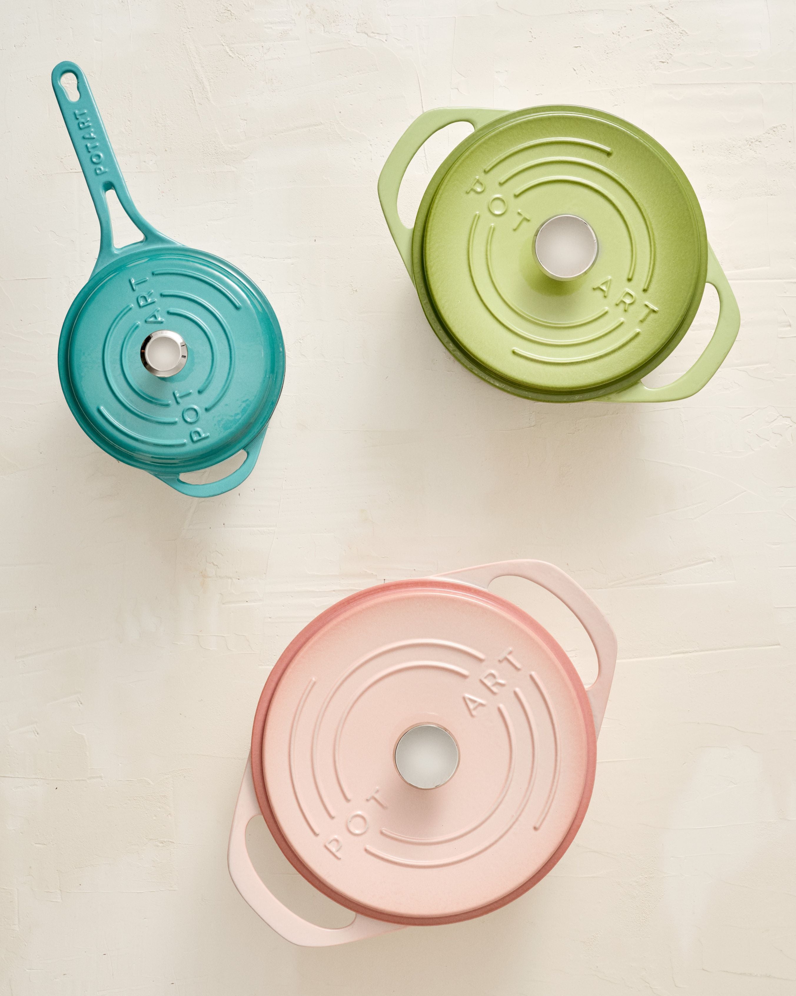 Pot Art döküm tencere ve tavalar üç kat sağlıklı, çizilmez ve antibakteriyel emaye kaplamaya sahiptir.