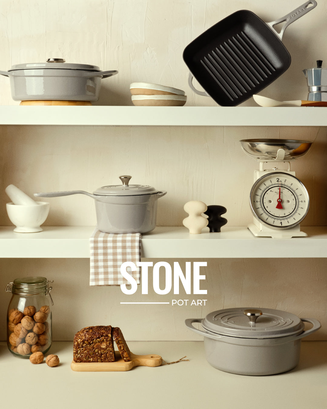 Pot Art döküm tencere ve tavalar üç kat sağlıklı, çizilmez ve antibakteriyel emaye kaplamaya sahiptir.